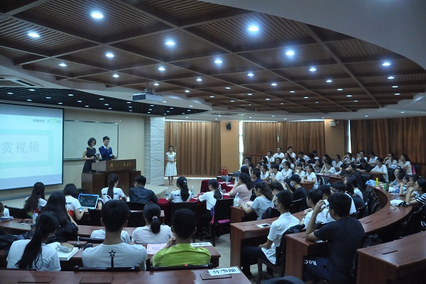 紧接着第三、四届会长进行会旗交接,交接结束后来到了游戏互动环节“猜猜我是谁”,游戏在大家积极参与下营造出一片欢声笑语的气氛,各位部长的表情包更是让人忍俊不禁,游戏结束后,郭艺伟老师与张媚老师为课业辅导优秀志愿者们颁发聘书,作为青协品牌活动之一,“天使”助学系列活动正在如火如荼的进行中,这些志愿者们身为学子,却心怀教师的爱,不得不让人敬佩。为志愿者们颁发聘书后,会长团为部长团颁发聘书了,看着部长们的神情,小部员们绝对相信这一届的部长一定能带领大家更好地服务社会,提升自我。之后的部门展示环节,红十字部、外事部、实践部、策划部、办公室五大部门依次作出展示,各部门都精心准备了小视频,里面记录了小部员们在部门里的脚印,那一个又一个的场景,仍然记忆犹新。接下来,邓小婷同学作为干事代表进行发言,从她的发言中可以看出一个部员应有的态度。