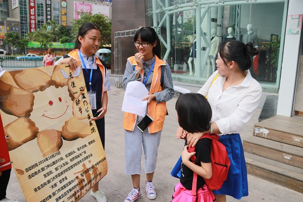 本次活动共有来自管理学院的51名志愿者参与,志愿者分为九组前往厦门中山路、轮渡码头、厦门火车站、厦大白城、曾厝�、��街及阿罗海城市广场七个地点进行募捐。