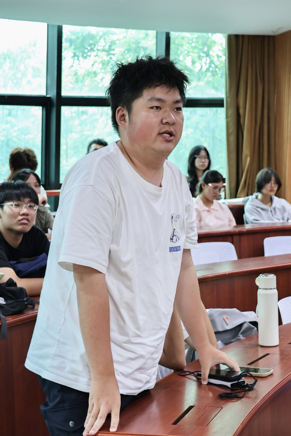 互动环节中,他分点回应不同群体关切。面对学生提问,针对大学竞赛价值、大一学习规划、物流专业前景、知识 “广与深” 平衡等问题,明确 “竞赛重过程、大一夯基础、行业缺口大、知识先深后广” 的核心观点;针对游俊雄主任提出的薪资与就业问题,他结合行业实际说明物流专业整体薪资可观,外派岗位与管理层岗位发展空间充足,且就业方向覆盖公职单位、各类企业物流岗位及跨境电商创业,不局限于传统物流行业。