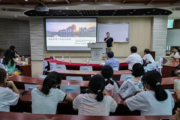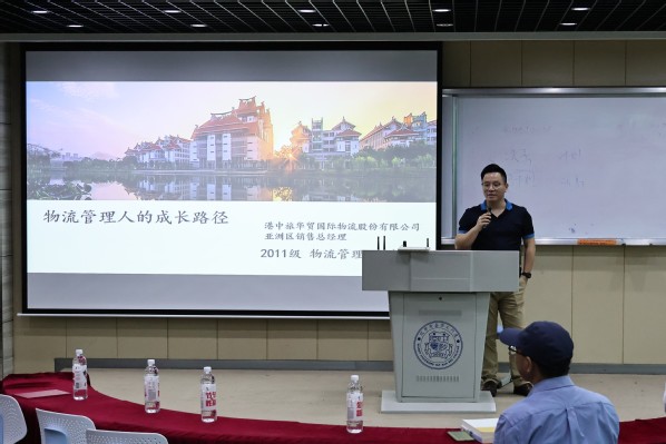 为帮助大一新生建立对物流专业的基础认知、引导职业发展方向,9月24日下午,管理学院第10期“校友讲堂”在经管大楼201成功开讲。本次活动特邀管理学院2011级物流管理专业校友港中旅华贸物流亚洲区行销总经理林清凯返校,做物流管理与供应链企业经理人经验分享,结合自身深耕物流行业的实战经历,分享行业前沿洞察与职业成长路径。现场,物流管理教研室主任游俊雄,专任教师丁保国、刘威、何娜及近百名在校生参会。