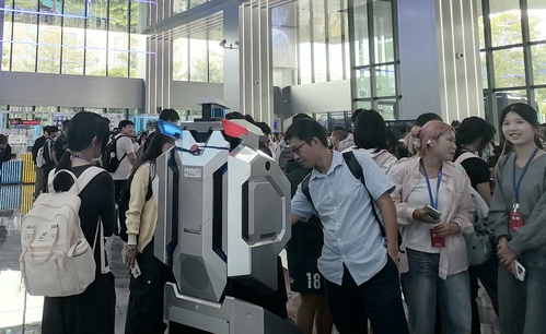 随后,新生们走进人工智能与大模型展示区。巨大的可视化数据大屏上,实时跳动的数据流让原本抽象的 “大数据” 概念变得看得见、摸得着。技术展示环节中,视频图片 AI 解析系统的表现让人印象深刻,它不仅能快速识别画面中的人物、物体和场景,还能通过城市交通视频统计车流量、识别闯红灯等异常行为。备受关注的视频通话 AI 换脸技术还邀请了新生现场体验,逼真的效果让大家啧啧称奇,工作人员同时着重提醒了技术滥用可能引发的诈骗风险,让同学们深刻意识到技术安全与伦理规范的重要性。