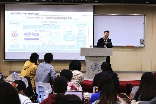 叶火龙从六个维度系统且全面地阐述了九牧的数字化体系架构,为师生们呈现了一幅清晰的企业数字化转型蓝图。